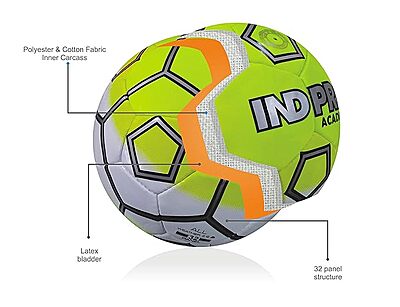 Name of commodity: Football, Brand: Indpro, Model: Academy, Material: High Grade Polyvinyl Chloride (PVC), Polyurethane (PU), Age Range: Teenagers and Adults, Size: 5